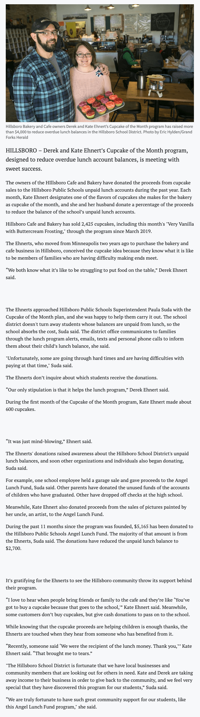Hillsboro Cafe and Bakery is reducing the community’s unpaid school lunch balance, one cupcake at a time